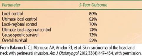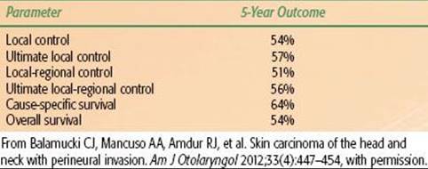 TABLE 33.10 OUTCOMES AFTER TREATMENT FOR SKIN CARCINOMA WITH INCIDENTAL PERINEURAL INVASION (107 PATIENTS)