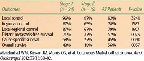 TABLE 33.13 MERKEL CELL CARCINOMA 5-YEAR OUTCOMES VERSUS STAGE
