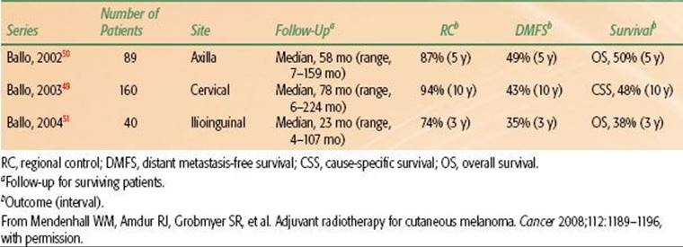 50. Ballo MT, Strom EA, Zagars GK, et al. Adjuvant irradiation for axillary metastases from malignant melanoma. Int J Radiat Oncol Biol Phys 2002;52:964–972.