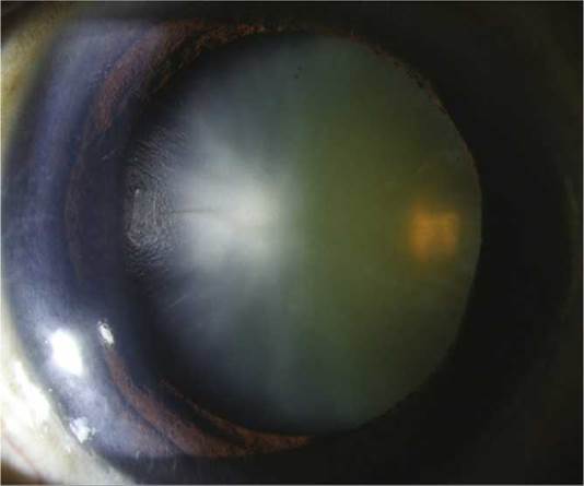 FIGURE 13.1.1 Cataract with early cortical changes and nuclear sclerosis.