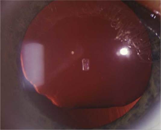 • Dilate the pupil, place the patient on his or her back, and attempt to replace the lens into the posterior chamber by head manipulation. It may be necessary to indent the cornea after topical anesthesia with a Zeiss gonioprism or cotton swab to reposition the lens. After the lens is repositioned in the posterior chamber, constrict the pupil with pilocarpine 0.5% to 1% q.i.d. and perform a peripheral laser iridotomy to prevent pupillary block.