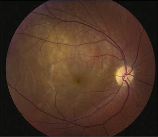 FIGURE 13.3.1 Serous macular detachment in a patient with preeclampsia.