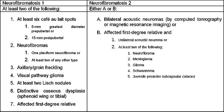 Diagnostic Criteria for Neurofibromatosis 1 and 2