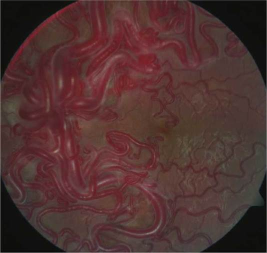 • Congenital retinal vascular tortuosity: Tortuous retinal vessels without racemose component.