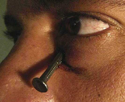 1. History: Determine the mechanism of injury (e.g., metal striking metal, power tools or weed-whackers, direct pathway with no safety glasses, distance of the patient from the instrument of injury, etc.). Attempt to determine the size, shape, velocity, force, and composition of the object. Always keep in mind the possibility of an intraocular foreign body (IOFB).