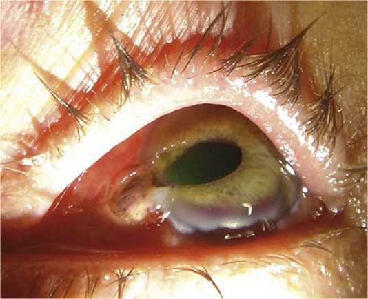 • If the melting progresses (or the cornea perforates), consider cyanoacrylate tissue adhesive. An emergency patch graft or corneal transplantation may be necessary; however, the prognosis for grafts is better if performed long after initial injury (over 12 to 18 months).
