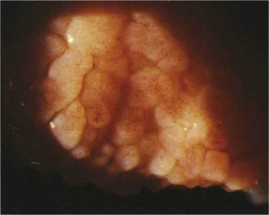 FIGURE 5.1.6 Vernal/atopic conjunctivitis with large superior tarsal papillae.