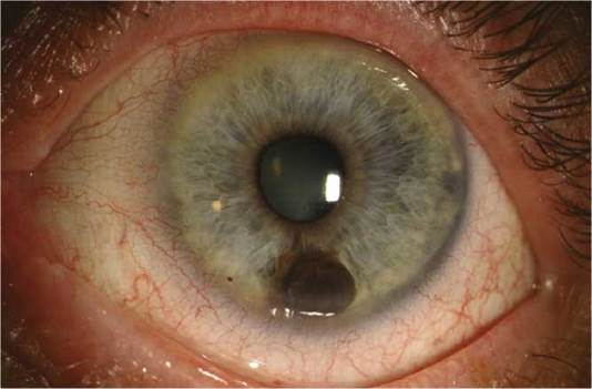 Critical. Unilateral brown or translucent iris mass lesion exhibiting slow growth. It is more common in the inferior half of the iris and in light-skinned individuals. Rare in blacks (see Figure 5.13.1).