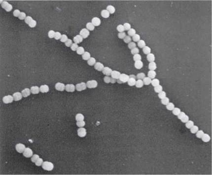 Fig. 11.2 Scanning electron micrograph of a chain of streptococci.