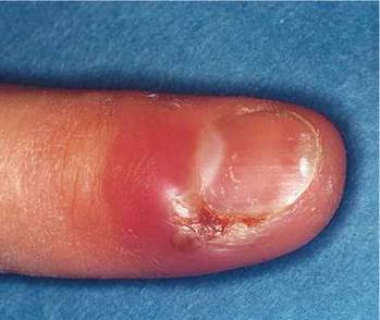 Fig. 21.2 A herpetic whitlow in a dentist caused by herpes simplex virus.