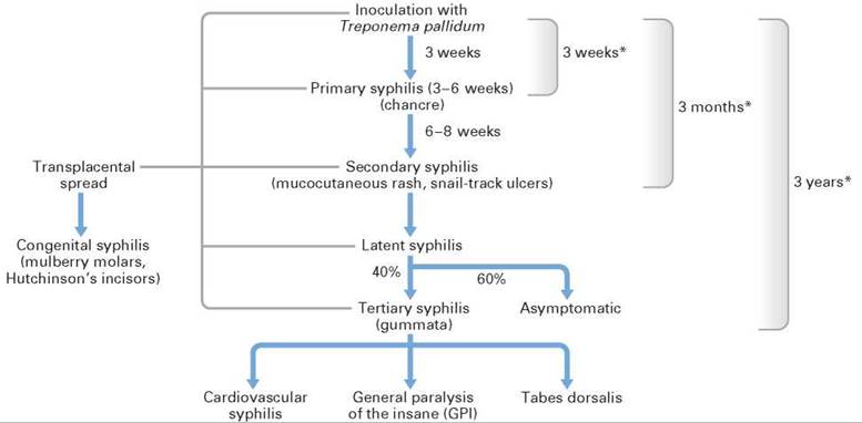 Fig. 27.3 Natural history of untreated syphilis. *Approximate figures.