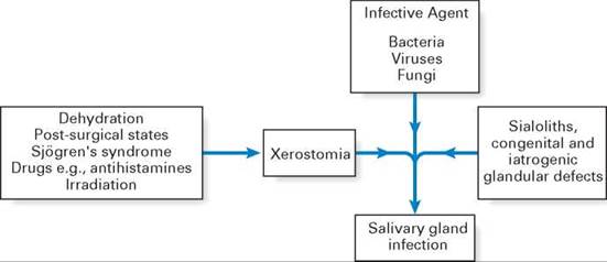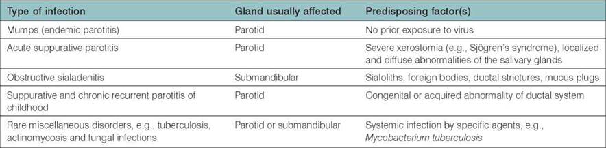 Salivary gland infections by organisms such as T. pallidum, Neisseria gonorrhoeae, Actinomyces israelii and M. tuberculosis have been rarely described. These may be due to: