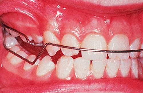 The fit of the appliance should be checked and adjusted — for obvious reasons it must be as comfortable as possible. It is important to check that the appliance is not causing unwanted interference with the eruption of permanent teeth, and it should be trimmed as appropriate. The activation of the appliance should be checked, and in cases where the initial overjet was large it may be necessary to reactivate or replace it. Finally, it is worth recording the standing height, as slow progress with the appliance may be because the patient is not in a rapid growth phase.