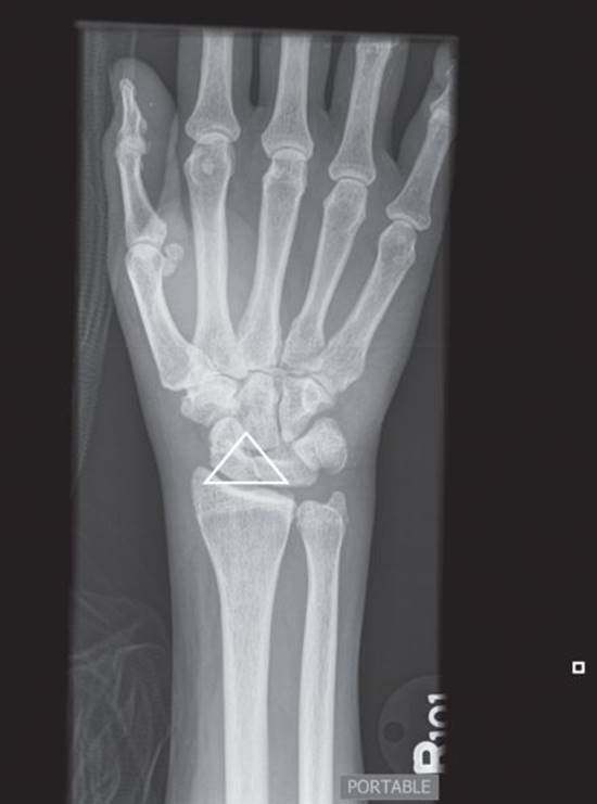 Figure 1.5 Hutchinson fracture: An intra-articular fracture through the radial styloid process. (Image courtesy of Carl Germann, MD.)