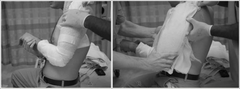 § Hold the affected extremity adducted to the side with the elbow flexed at 90°