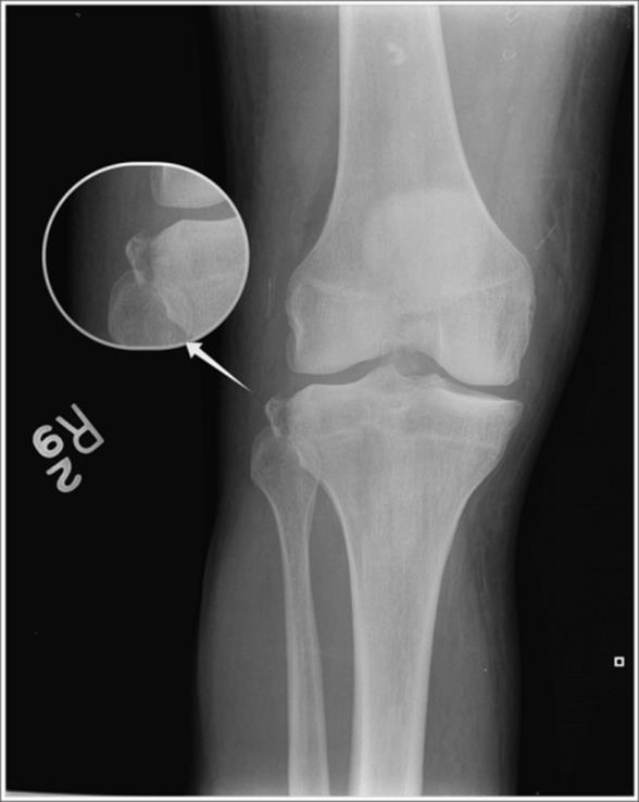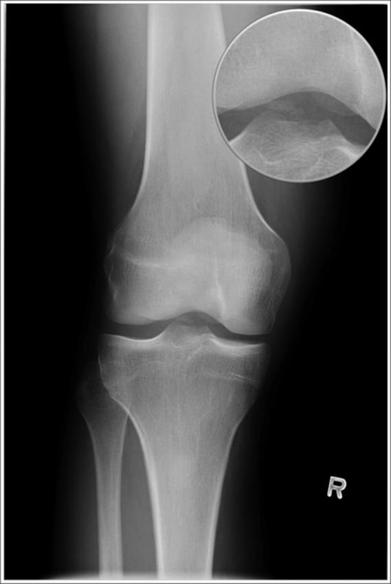 · Purely chondral lesions (e.g., cartilage only with no bony fragment) will not be seen on plain radiographs but will present as a loose body in the future as the patient ambulates (intermittent sharp pain and locking)