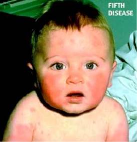Fifth disease (erythema infectiosum) is a common childhood viral disease caused by the Parvovirus that last from two to five days, but occasionally may persist for weeks. It occurs in epidemics every few years, and virtually every child will eventually develop the infection before their teenage years.
