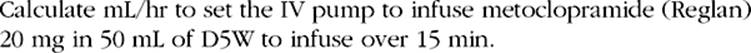· Metoclopramide (Reglan) 20 mg IV in 50 mL of D5W to infuse over 15 min