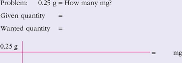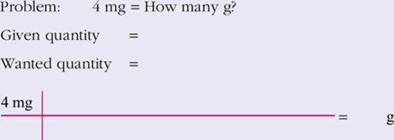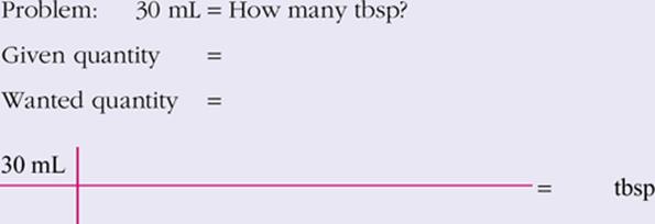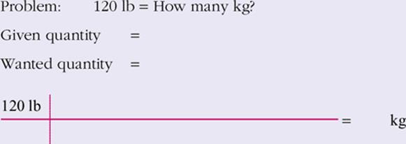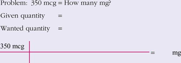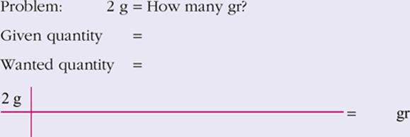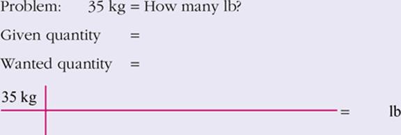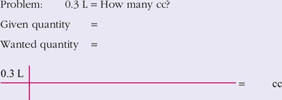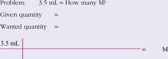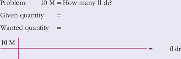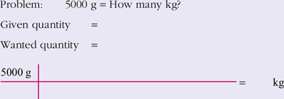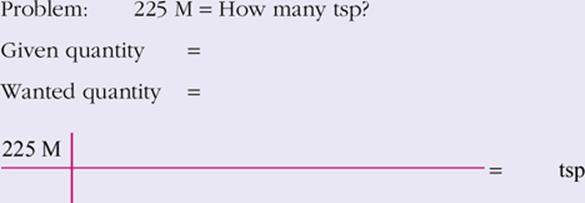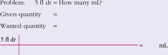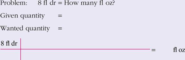 Below is an example of the problem-solving method, showing the placement of basic terms used in dimensional analysis.