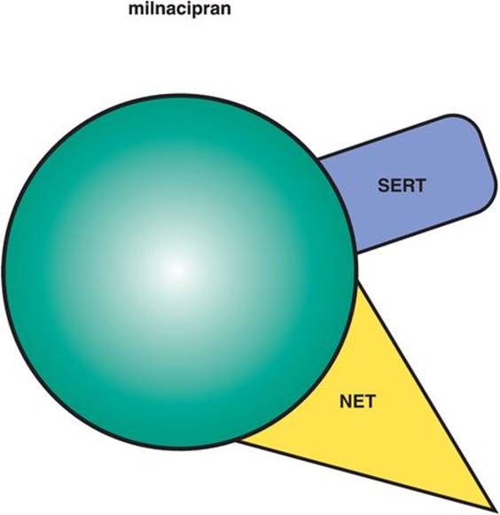 This SSRI has two candidate mechanisms that distinguish it: dopamine transporter (DAT) inhibition and sigma-1 (σ1) receptor binding (Figure 7-19). The DAT inhibitory actions are controversial since they are weaker than the SERT inhibitory actions, thus leading some experts to suggest that there is not sufficient DAT occupancy by sertraline to be clinically relevant. However, as will be discussed later in the section on norepinephrine–dopamine reuptake inhibitors (NDRIs), it is not clear that high degrees of DAT occupancy are necessary or even desirable in order to contribute to antidepressant actions. That is, perhaps only a small amount of DAT inhibition is sufficient to cause improvement in energy, motivation, and concentration, especially when added to another action such as SERT inhibition. In fact, high-impact DAT inhibition is the property of reinforcing stimulants, including cocaine and methylphenidate, and would not generally be desired in an antidepressant.