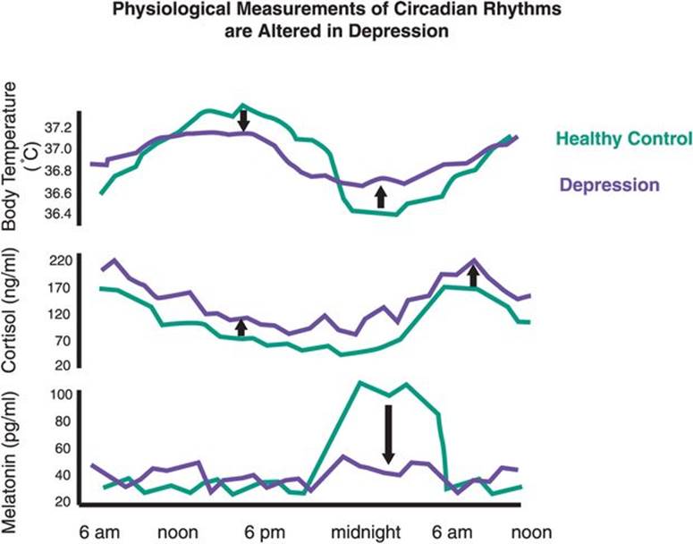 The hypothetical pathways for the five additional associated symptoms of depression are shown in Figure 7-81. Sometimes it is said that for a good clinician to get patients with major depression into remission, it requires targeting at least 14 of the 9 symptoms of depression!