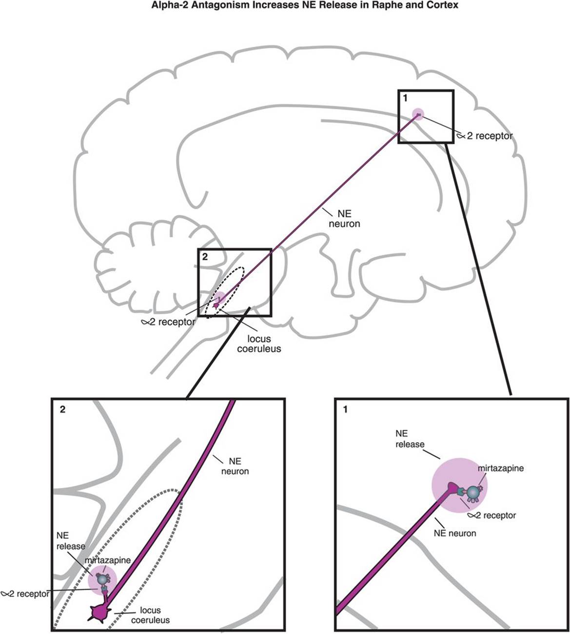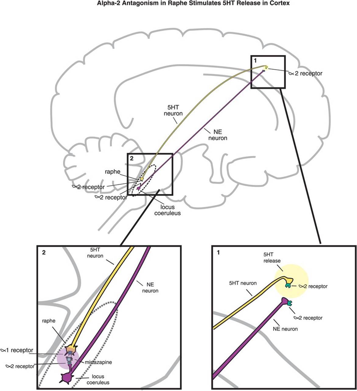 Alpha-2 antagonist actions and mirtazapine