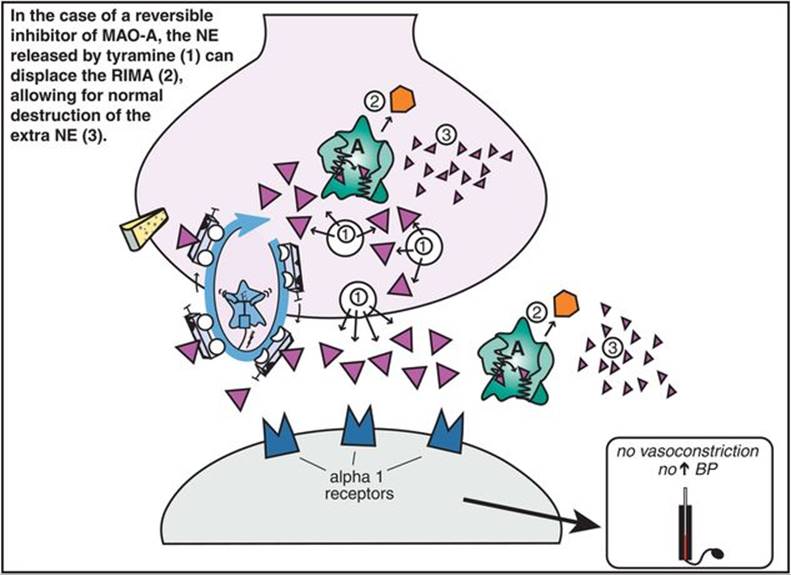 This potentially powerful combination utilizes the pharmacologic synergy obtained by adding the enhanced serotonin and norepinephrine release from inhibition of both dual serotonin and norepinephrine reuptake by an SNRI to the disinhibition of both serotonin and norepinephrine release by the α2 antagonist actions of mirtazapine (Figure 7-87). It is even possible that additional pro-dopaminergic actions result from the combination of norepinephrine reuptake blockade in prefrontal cortex due to SNRI actions with 5HT2C actions of mirtazapine disinhibiting dopamine release. This combination can provide very powerful antidepressant action for some patients with unipolar major depressive episodes. Mirtazapine combinations with various SSRIs and SNRIs have also been studied as potential treatments from the initiation of therapy in major depression.