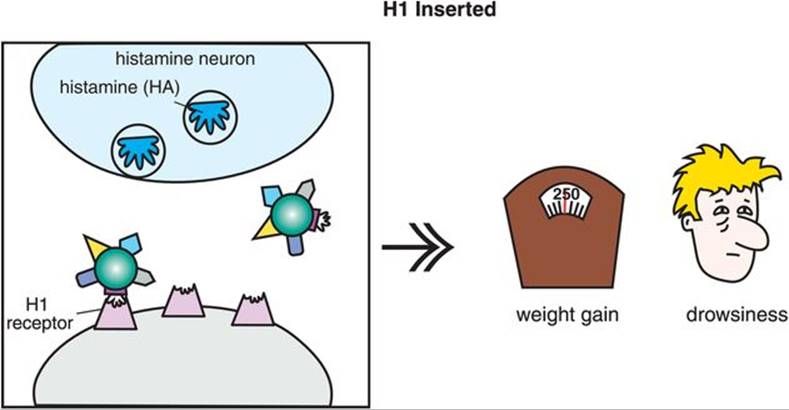 The good news about 5HT2C antagonism may be that it is generally activating, and many patients, even from the first dose, detect an energizing and fatigue-reducing effect of fluoxetine, with improvement in concentration and attention as well. This mechanism is perhaps best matched to depressed patients with reduced positive affect, hypersomnia, psychomotor retardation, apathy, and fatigue (Figure 6-46). Fluoxetine is also approved in some countries in combination with olanzapine for treatment-resistant unipolar depression and for bipolar depression. Since olanzapine also has 5HT2C antagonist actions (Figure 5-46), it may be that adding together the 5HT2C antagonist actions of both drugs could theoretically lead to further enhanced DA and NE release in cortex to mediate the antidepressant actions of this combination. 5HT2C antagonism may also contribute to the anti-bulimia effect of higher doses of fluoxetine, the only SSRI approved for the treatment of this eating disorder.