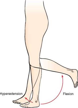 The anatomy of the knee is shown in Figure 20-15. The joint movements at the knee are flexion and hyperextension. These motions are illustrated in Figure 20-16.