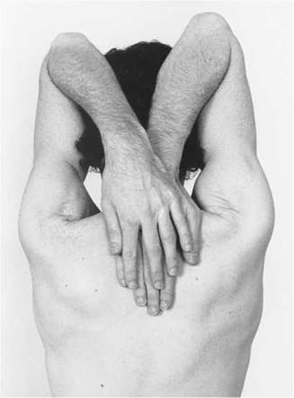 • No joint deformities are noted. There is marked reduction of hip internal and external rotation. No pain is produced by these movements. Pain is produced by abduction of the right shoulder against resistance. The range of right shoulder abduction is reduced. The range of motion of the hands, wrists, spine, knees, and ankles is normal.