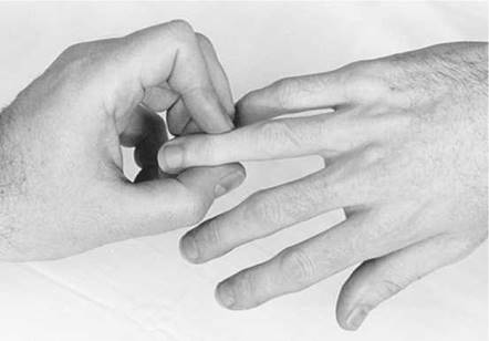 The anatomy of the wrist and fingers is illustrated in Figure 20-9. The joint movements at the wrist are dorsiflexion (or extension) and palmar flexion and supination and pronation. These motions are illustrated in Figure 20-10. The joint movements at the fingers are abduction and adduction and flexion. These motions are illustrated in Figure 20-11. The joint movements of the thumb are flexion and extension and opposition. These motions are illustrated in Figure 20-12.
