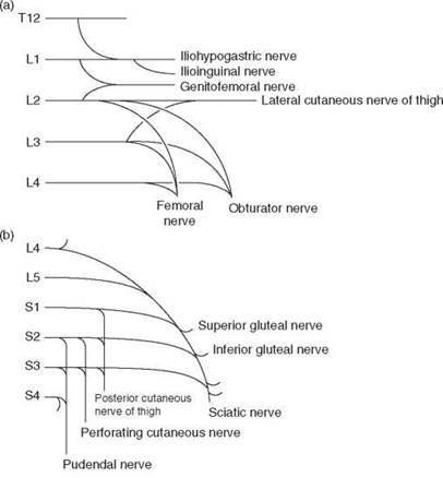 Figure 10.5 Plan of (a) lumbar plexus and (b) sacralplexus.