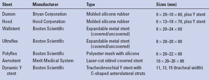 TABLE 2.1 Common Commercially Available Tracheobronchial Stents