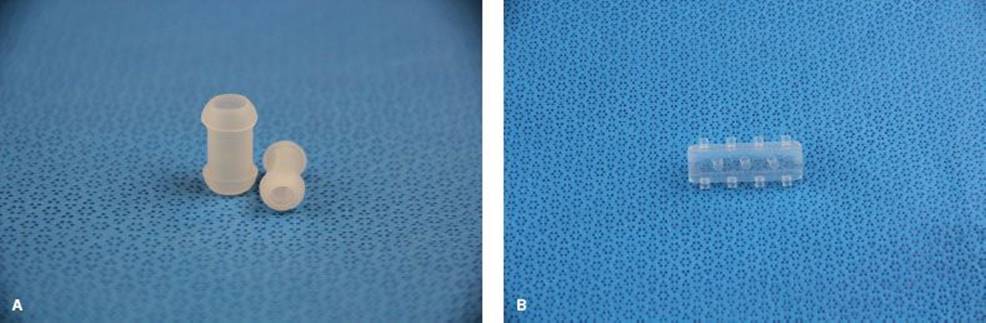 Figure 2.2 Molded silicone stents. A: Hood silicone stents and Dumon-style stents are similar. B: Dumon stents have studs.
