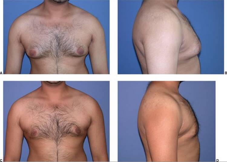 The first surgical procedures used to treat gynecomastia were excisional in nature.11 Suction-assisted lipectomy was first reported in the early 1980s,12 and more recently ultrasound-assisted liposuction has been used for certain types of gynecomastia.10 The physical deformity determines the appropriate surgical technique for the treatment of gynecomastia.