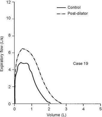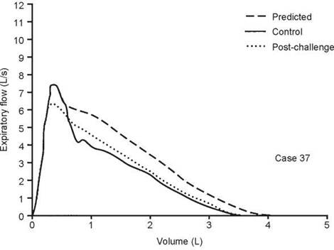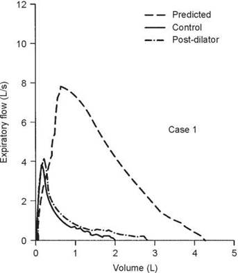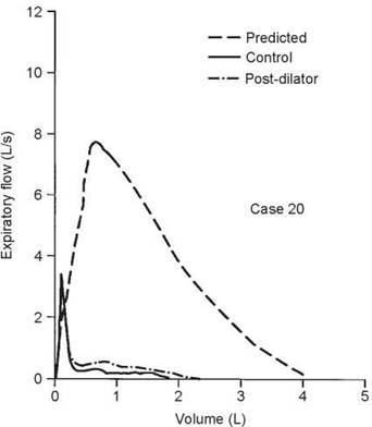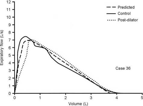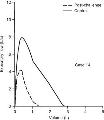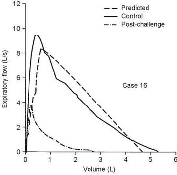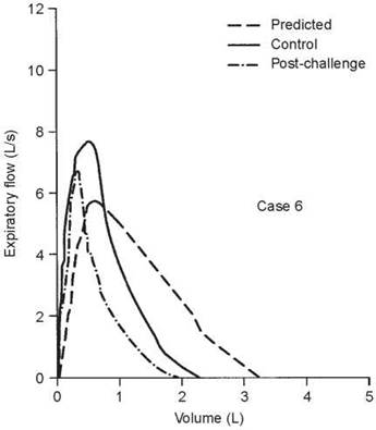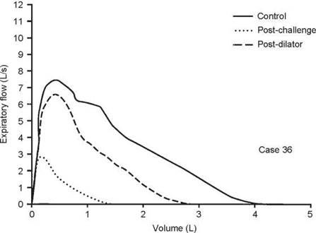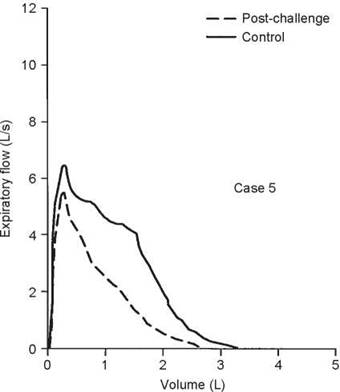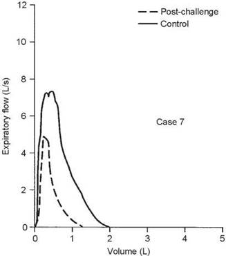 This case illustrates the importance of considering the reactivity of the airways at the time of testing. When the first test was done, the airways were fully dilated and there was no response to bronchodilator. Hence, methacholine was needed to confirm the diagnosis. In some situations, the airways may be constricted such that methacholine will have no effect but a dilator will. In this case, the control FEV1/FVC ratio was 80%, during the 67% reduction in FEV1 the ratio was 76%, and it was 81% on the postdilator curve. This again shows that the ratio does not always detect airway obstruction.
