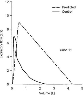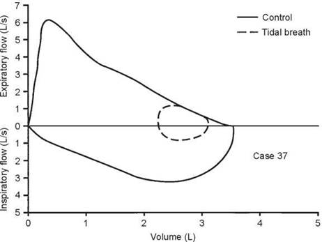 1. The control flow-volume curve shows some loss of area, consistent with a mild ventilatory limitation.